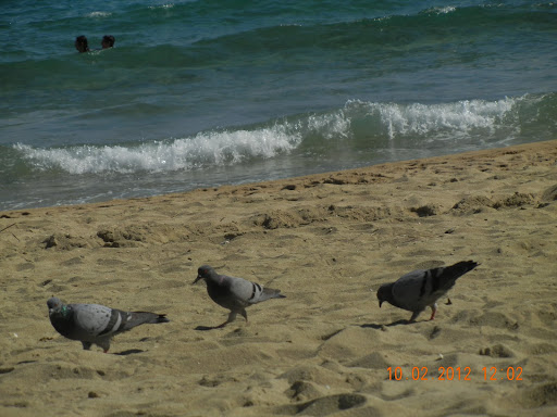 Pigeons on the beach. We were delighted to see them, but found that they have replaced gulls on the beaches. Perhaps it was because it was so cold?