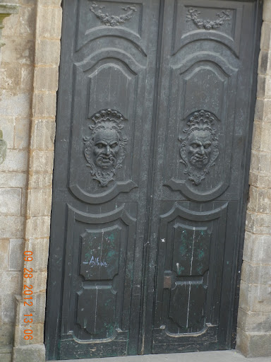 Notice the pilgrim head behind St. James’s shoulder. Stairs lead up behind the statue so that people can hug the saint, or say prayers.