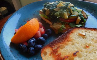 Best breakfast sandwich anywhere, the mostly veggie version with zucchini, mushrooms, greens. The meatier variation includes bacon, an egg, and cheese. The staff will make anything you like within this range.